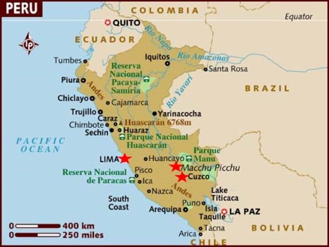 We visited Peru which was the first time we'd been to South America. After flying into the capital Lima, we then flew to Cuzco which was the capital of the Inca empire prior to the Spanish taking over. From there we traveled by taxi and train to magnificent Machu Picchu and then back to Cuzco. And finally back in Lima to finish the visit. |